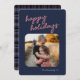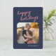 Blue Pink Plaid 1-Photo Happy Holidays Script Holiday Card