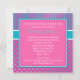 This turquoise and hot pink polka dots and stripes Sweet 16th birthday party invitation on basic paper can also be customised for a Quinceanera or Bat Mitzvah, The text and paper choice is customisable. If there are any matching items you would like in this design, please email niteowlstudio@gmail.com with your request.