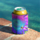Blue pink retro funky sunflower photo can cooler