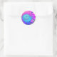 Blue pink retro funky sunflower photo classic round sticker