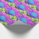 Blue pink retro funky sunflower photo wrapping paper