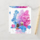 A budget baby shower or gender reveal invitation. On a white background the design consists of elegant blue and pink smoke, that contains the baby's surname followed by gender reveal within black typography text. A couple in pink and blue t-shirts are seen watching the smoke while surrounded by love heart shaped blue and pink balloons. Personalize by adding your full event and contact details to the front and back.