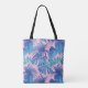 Blue Pink Tropical Palm Leaf Tote Bag