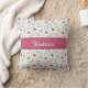 Blue Pink Wildflower Botanical Monogram Name Throw Pillow (Edit)