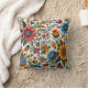 Blue Pink Yellow Embroidery Style Flowers Floral Cushion