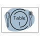 Colorful customized table cards dotted with plates, knives and fork illustration. Ideal for general catering, parties or businesses. (6 colors to choose from or mix and match)