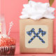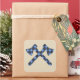 A sticker with two axes crossed, this design features a blue and black plaid pattern with a beige background. Personalise as you wish.