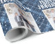 Blue Plaid Gingham Custom Photo Christmas Holiday Wrapping Paper