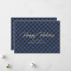 Elegant blue and gold business holiday cards featuring a faux gold calligraphy title and snow on a blue buffalo plaid background. Easily personalise these blue business holiday cards with your company name.