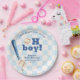 Blue Plaid Little Slugger Baseball Baby Shower Paper Plate