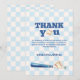 Blue Plaid Little Slugger Baseball Baby Shower Thank You Card