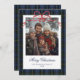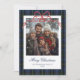 Blue Plaid Red Bow Photo Holiday Card