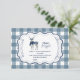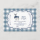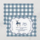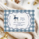 Celebrate in cosy winter style with this charming baby shower invitation. A sweet watercolor reindeer stands at the centre of a classic blue plaid background, framed by a scalloped label with vintage flair—perfect for welcoming a little boy during the holiday season.