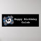 Blue Plaid Skull & Bones Birthday Party Banner Poster