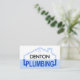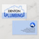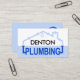 Cover features a "PLUMBING" signage that is made into a home pipe frame that is leaking water. The water levels at the base of the card has risen. At the very top, underneath the roof lies your prestigious name.