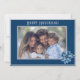 Blue Poinsettia Photo Flat Holiday Card