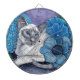 Original watercolor painting by Sandra Gale, featuring a blue point Siamese cat, surrounded by blue flowers on a pale purple background. Flowers are blue hydrangea, and blue poppies. Great design for cat lovers and those who especially like the Siamese breed. Perfect for bedroom wall art or framed with matching image. Matching watercolor painting of a chocolate point Siamese also available in my EverIrisPrints store.