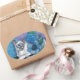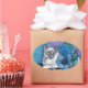 Original watercolor painting by Sandra Gale, featuring a blue point Siamese cat, surrounded by blue flowers on a pale purple background. Flowers are blue hydrangea, and blue poppies. Great design for cat lovers and those who especially like the Siamese breed. Perfect for bedroom wall art or framed with matching image. Matching watercolor painting of a chocolate point Siamese also available in my EverIrisPrints store.