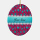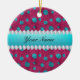 Blue Polka Dots Hot Pink Faux Diamonds Ceramic Ornament