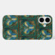 An iPhone case with blue pomegranates surrounded by scrolling leaves in shades of brown on an aqua green background grace this elegant art reproduced from antique majolica art tiles. Customise it to add your name or message, move elements, change case type, even save your design for later.