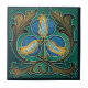 Blue pomegranates surrounded by scrolling leaves in shades of brown on an aqua green background grace this elegant art reproduced from antique majolica art tiles.