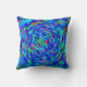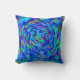 An abstract in shades of blue, purple, green, pink, orange, aqua, yellow, lavender and more adorn this colourful throw pillow.