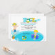 Start your celebration off right with this adorable invitation. Perfect for that birthday boy's pool party. It has a white background. There is a large swimming pool with an adorable, cute boy standing next to it in a puddle of water. He has blonde hair and blue goggles on his head. In the pool is a cute blonde haired boy floating in a raft. Across the top of the invite is the word pool party. The two O's in pool are colourful tubes. Check out the many other products and designs in this pool party line. ©JW Illustrations