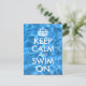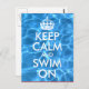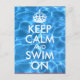 Customisable "Keep Calm and Swim On" with white text against tinted photo of blue swimming pool water.