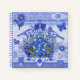 A Notebook with a print of an antique porcelain birds, birdcage with blue flowers and butterflies against an antique lace background. Looks great with Blue Porcelain Teacup and Flowers notebook, planner or journal.