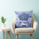 A throw pillow with a print of an antique porcelain cup filled with blue flowers and butterflies against an antique lace background. Looks great as a pair with Blue Porcelain Birds and Birdcage pillow.