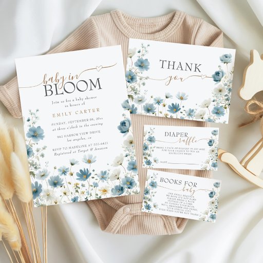 Blue Preppy Flowers Watercolor Baby ShowerDesigned by Zakreva Olha