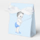 Adorable blue prince baby shower favour boxes. You can add text, change the bow colour and add a background colour of your choice to this cute blue prince baby shower favour box.