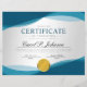 Elegant Blue Wave Shapes & Grey Gradient Background, Professional Certificate of Completion Award Featuring Gold Medal Award. Customise To Your Liking.