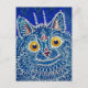 A fine art postcard featuring an abstract blue cat illustration by the English artist Louis Wain (1860-1939). Renowned for his illustrations, he is most celebrated for his depictions of animals and pastoral scenes, particularly his distinctive large-eyed cats full of character. This drawing is from his psychedelic period.
