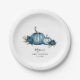 Rustic and boho fall baby shower plate featuring watercolor illustration of blue pumpkins and flowers.
