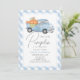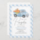 Blue Pumpkin Truck Gingham Boy 1st Birthday Invitation