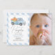 This cute vintage, and rustic "little pumpkin" boy's 1st/first birthday photo invitation features a white background with baby blue gingham checks and a blue truck filled with pumpkins and flowers. The reverse side features a white background with light grey polka dot patterns. Personalise for your needs. You can find more matching products at my store.