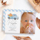This cute vintage, and rustic "little pumpkin" boy's 1st/first birthday photo invitation features a blue truck filled with pumpkins and flowers. The reverse side features a white background with blue gingham check patterns. Personalise for your needs. You can find more matching products at my store.
