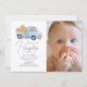 Blue Pumpkin Truck Gingham Boy Photo 1st Birthday Invitation