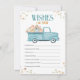 A Fall Blue Pumpkin Truck Wishes for Baby card. Create a memorable keepsake for the parents-to-be with these baby shower Wishes for Baby cards. Perfect for a fall baby shower!