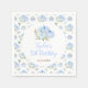 This cute and whimsical watercolor birthday party napkin features pastel blue pumpkins and beautiful floral arrangements. The text combines handwritten script and sans serif fonts for a stylish and modern look. This is perfect for an autumn fall birthday party.