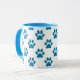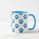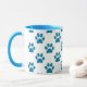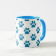 Coffee mug with blue puppy paws print on white background. Perfect gift for the animal lover.