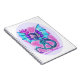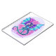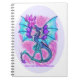 Blue purple and pink dragon flying, breathing fire notebook