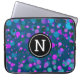 Blue purple confetti glitter dots monogram on teal laptop sleeve