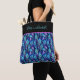 Blue Purple Peacock Feathers on Black Monogram Tote Bag