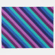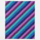 A large sized fleece blanket featuring a colourful pattern design of diagonal stripes in cool teal, ocean blue, navy blue, plum purple, and lavender.