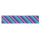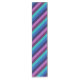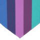 A 14” x 72” table runner featuring a colourful pattern design of diagonal stripes in cool teal, ocean blue, navy blue, plum purple, and lavender.