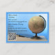 Blue QR Code Tutor Teacher Globe & Book Classroom Business Card