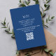 Ideal for classic, formal, and modern weddings, this blue design complements minimalist, botanical, and timeless wedding themes. Fully customizable with your event details and personalized QR code link.