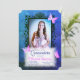 This vibrant blue and pink butterfly Quinceañera invitation with decorative, antique photo frame is a cute fun look. Butterflies can be moved and resized. Beautiful script writing is easy to modify. Pink and blue colours are unique and colourful. Popular blue and pink quinceanera invite layout is ideal for digital cards, digital file for sharing text invitations. Decorative pink and blue photo border is versatile for pink quinceanera dress or gown, as well as a blue quinceanera dress or princess gown.